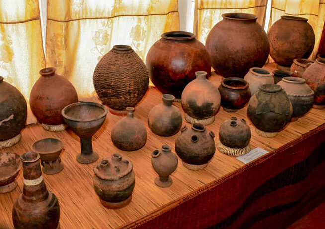 Avant l’arrivée de la vaisselle en émail, le Murundi s’est servi de la calebasse pour différents usages. Le musée en présente quelques formes …